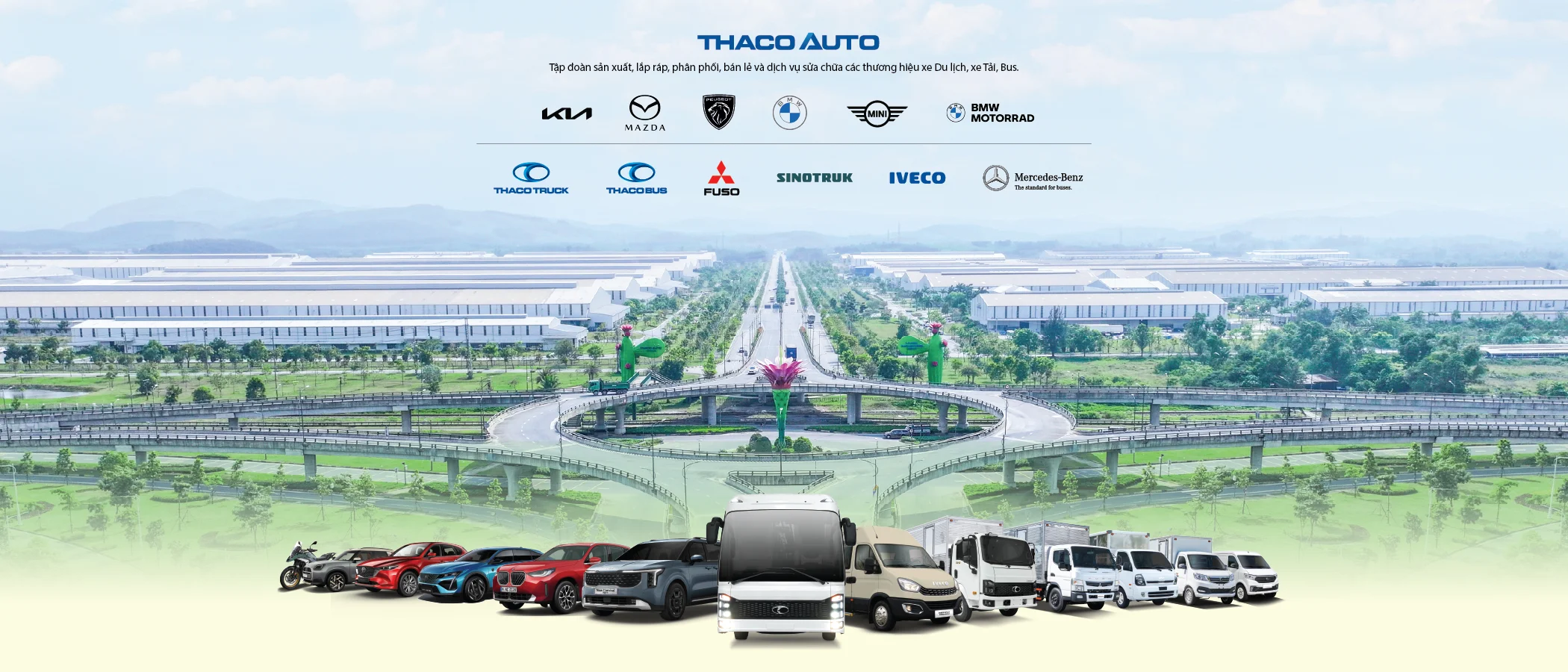 THACO AUTO Đồng Tháp kinh doanh đầy đủ chủng loại xe du lịch, xe bus, xe tải, xe chuyên dụng đến từ các thương hiệu ô tô quốc tế (Kia, Mazda, Peugeot, BMW, Mitsubishi Fuso, Foton, SinoTruk, IVECO Daily) và thương hiệu THACO (THACO TRUCK & THACO BUS), đáp ứng nhu cầu sở hữu xe chuyên biệt đến từng khách hàng.